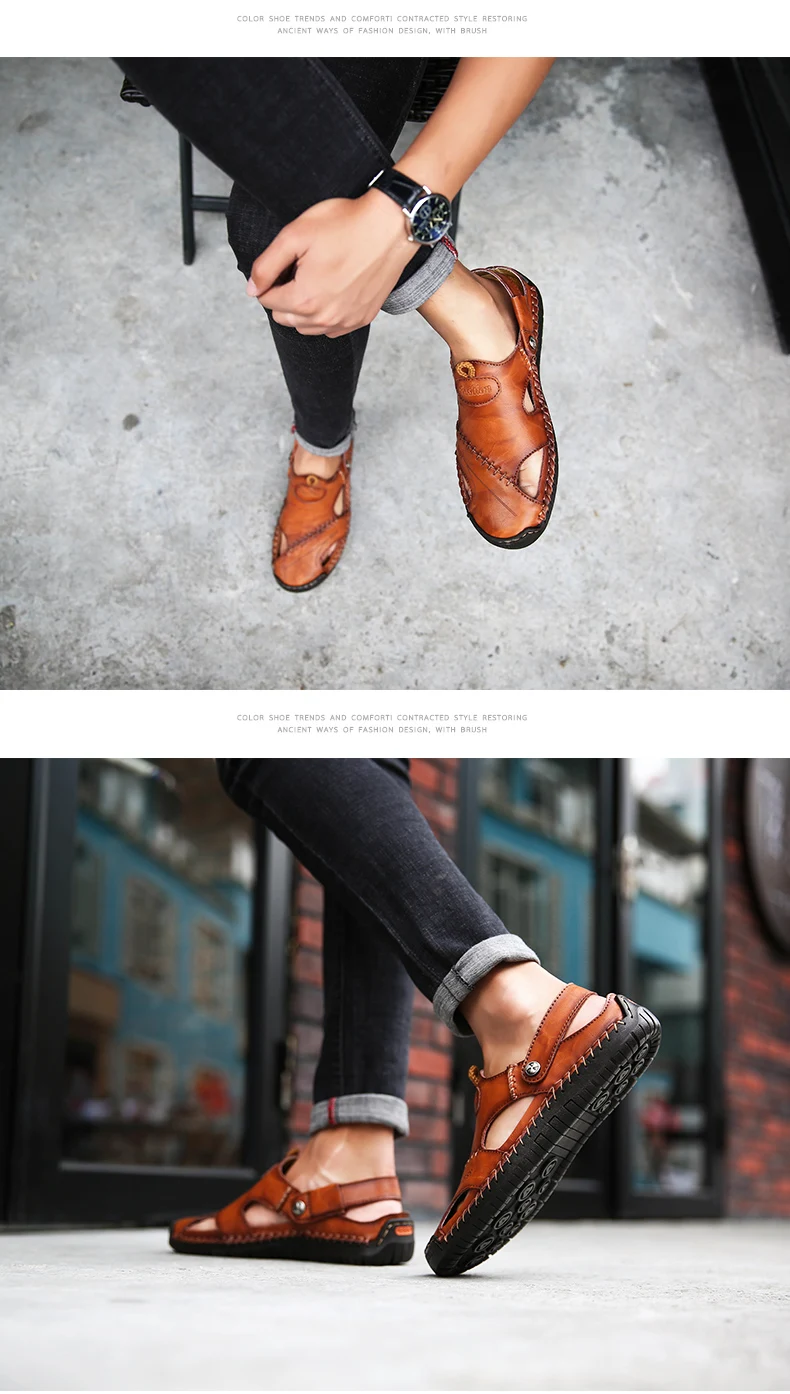 Summer Sandals Men Leather Classic Roman Sandals 2023 Slipper Outdoor Sneaker Beach Rubber Flip Flops Men Water Trekking Sandals